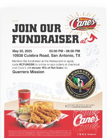 Wings CRS announces its first public fund-raiser with Raising Canes restaurants, supporting the Guerrero Mexico Recovery & Resilience Mission.